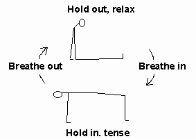 While breathing in and keeping your legs and arms straight, raise your body as high as you can, as depicted above. Then breathe out returning to the original position. Tense your muscles at each position.